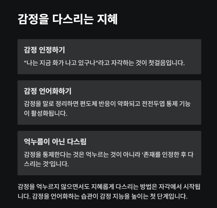 - 감정을 억누르지 않고 통제하는 법