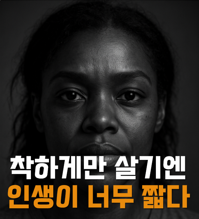 우리는 어릴 적부터 "착하게 살아야 한다"는 말을 듣고 자랐습니다. 남에게 피해를 주지 않고, 항상 베풀고, 헌신하는 삶이야말로 옳은 삶이라고 배웠죠. 하지만 막상 사회생활을 시작하고, 인생을 살아가다 보면 이런 '착한 삶'만으로는 채워지지 않는 허전함을 느끼게 됩니다. 항상 남을 먼저 배려하다 보니 정작 자신의 목소리는 작아지고, 꿈은 멀어져만 가는 경험을 하게 되죠. 내 경험상, 늘 남을 먼저 생각하다 보니 정작 내가 원하는 삶을 살지 못하고 후회하는 경우가 많았습니다. "내가 왜 이렇게 살아야 하지?"라는 질문이 머릿속을 맴돌고, 무기력함과 불만족에 시달리게 됩니다.